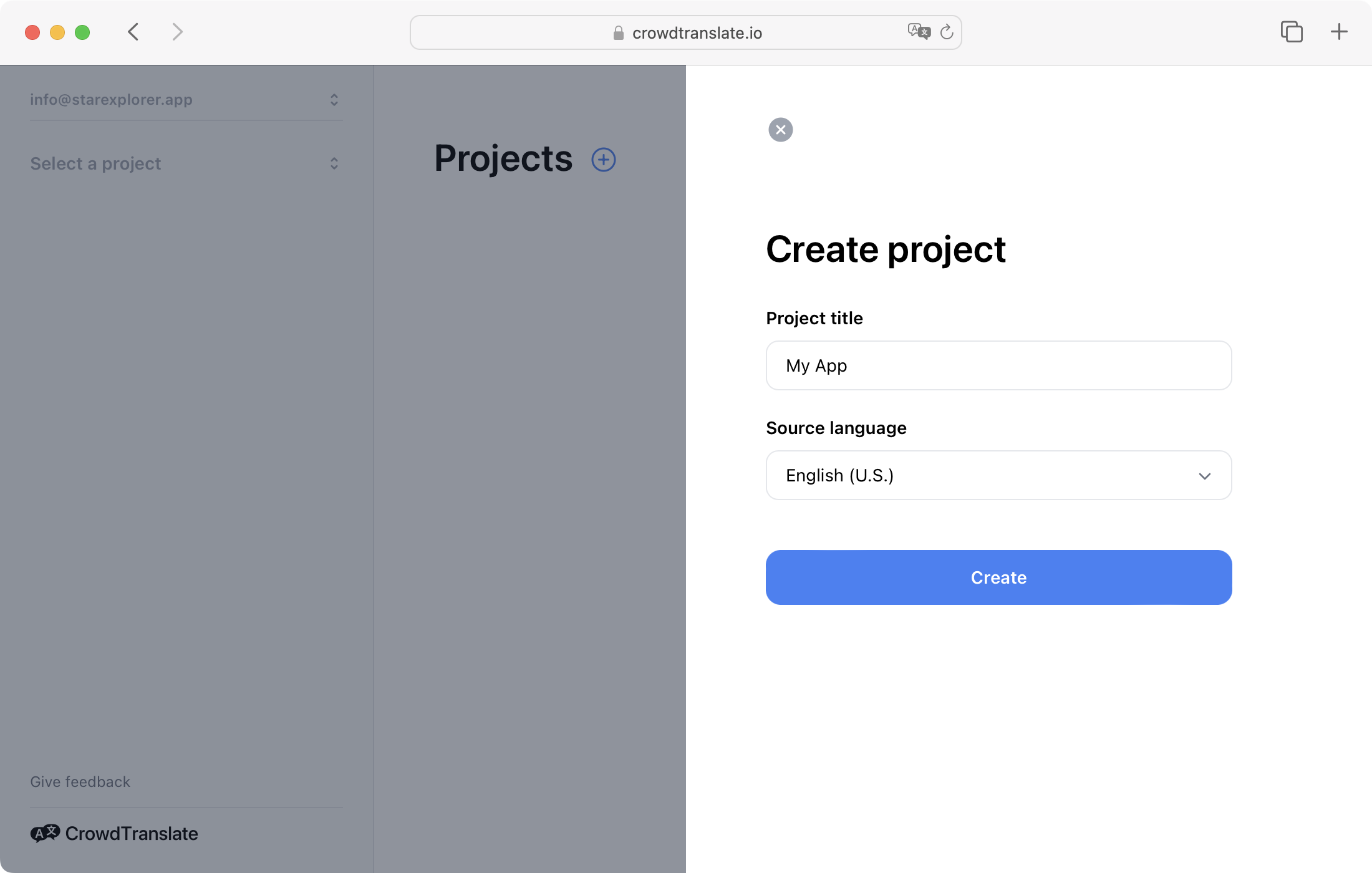 Consider using the name of your app as the project title. This title will become visible to all users when you publish your project for translation by contributors.